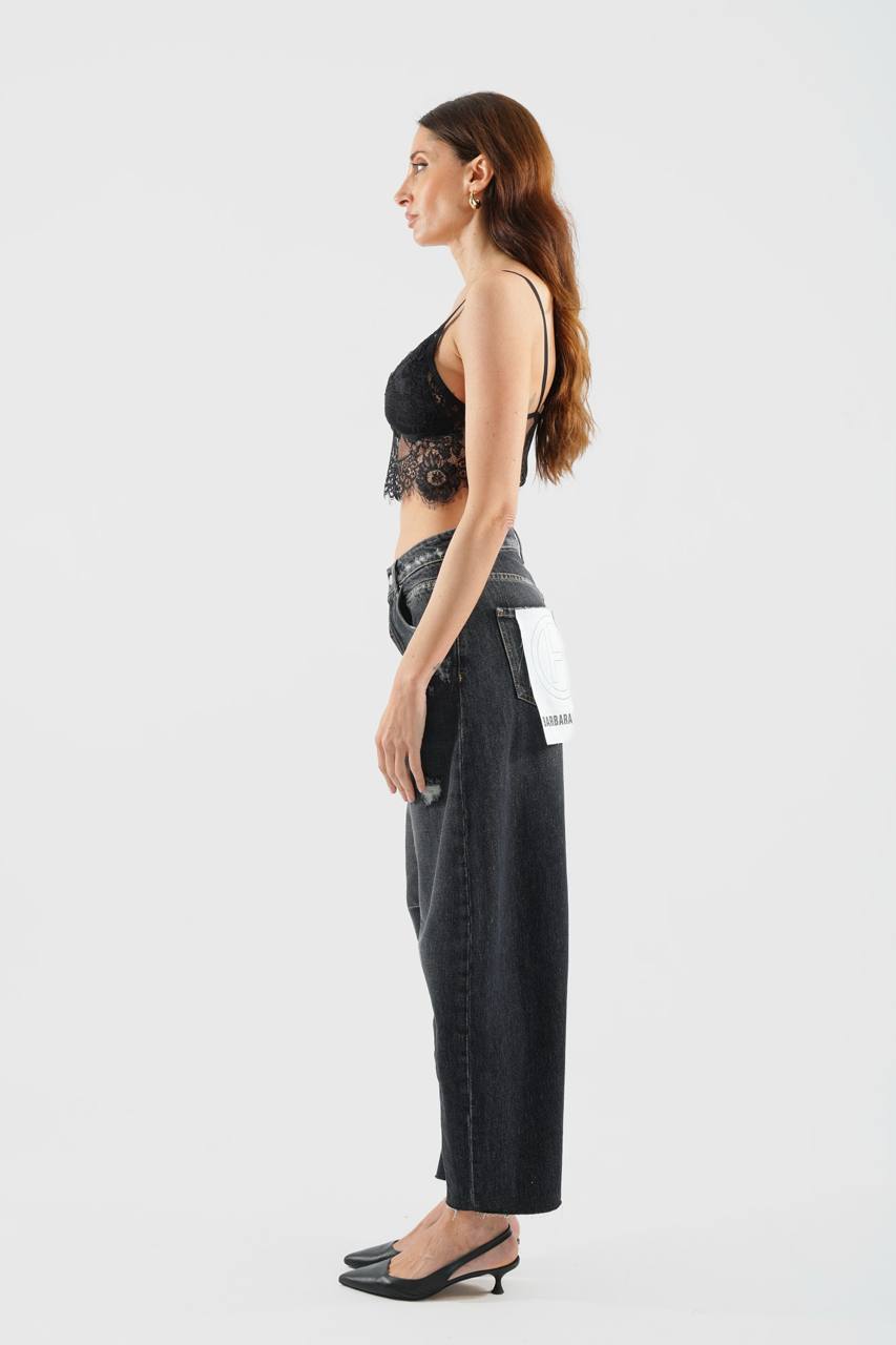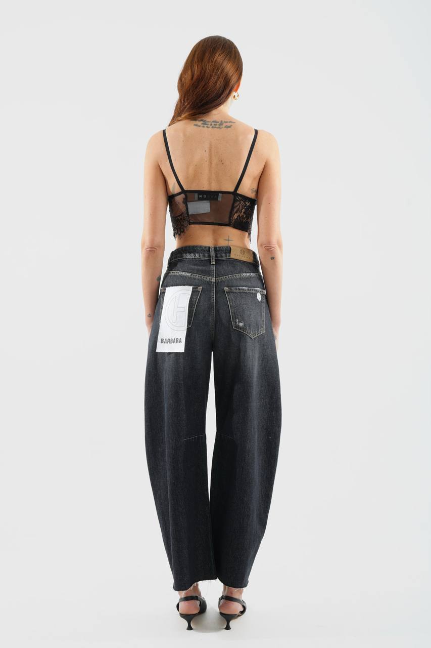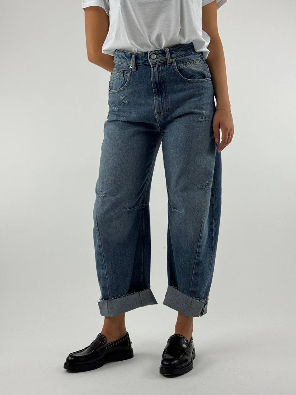 Questo jeans a vita alta presenta una silhouette ampia e rilassata, perfetta per un look casual e contemporaneo. Versatile e comodo, si abbina facilmente a t-shirt, camicie o maglioni per outfit sempre attuali.