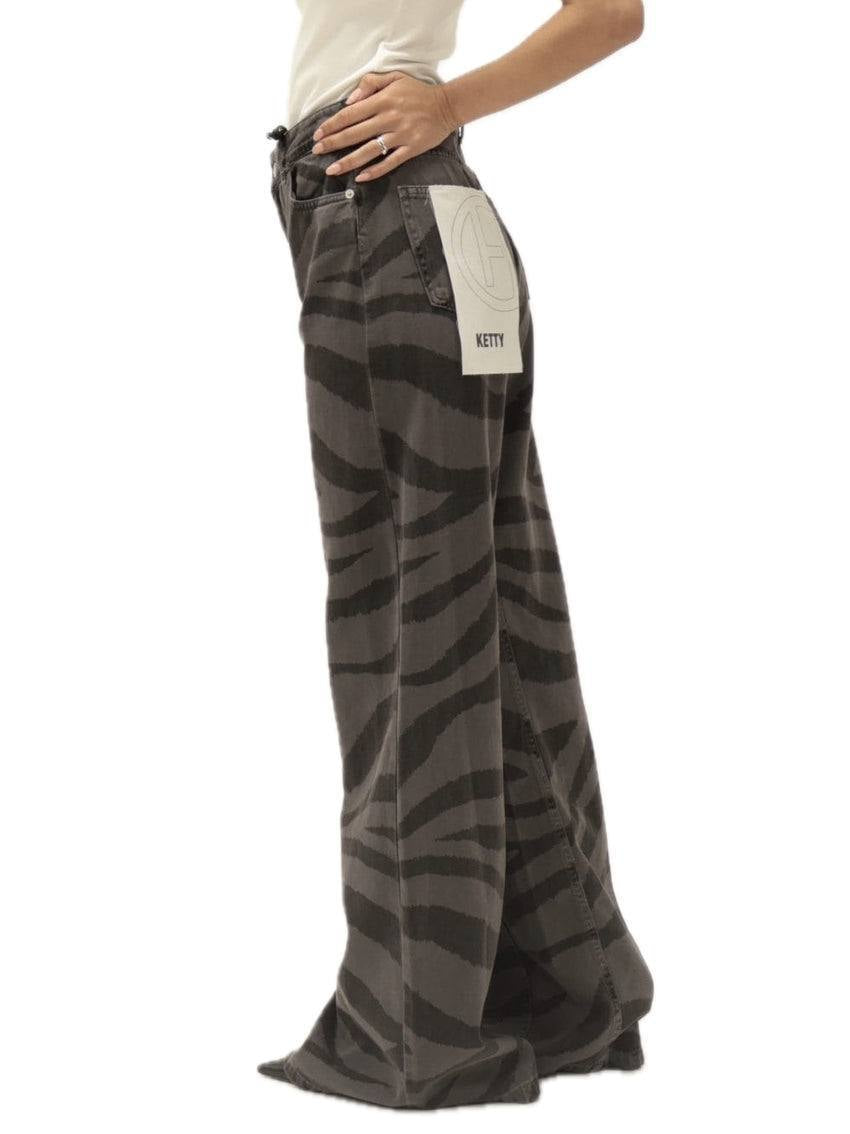Aggiungi un tocco grintoso al tuo look con questi jeans palazzo a vita alta, caratterizzati da un'accattivante stampa zebrata tono su tono. Realizzati in denim di alta qualità, offrono una vestibilità ampia e confortevole, perfetta per uno stile casual ma deciso. Ideali da abbinare a una t-shirt basic o a un top crop per un outfit di tendenza.